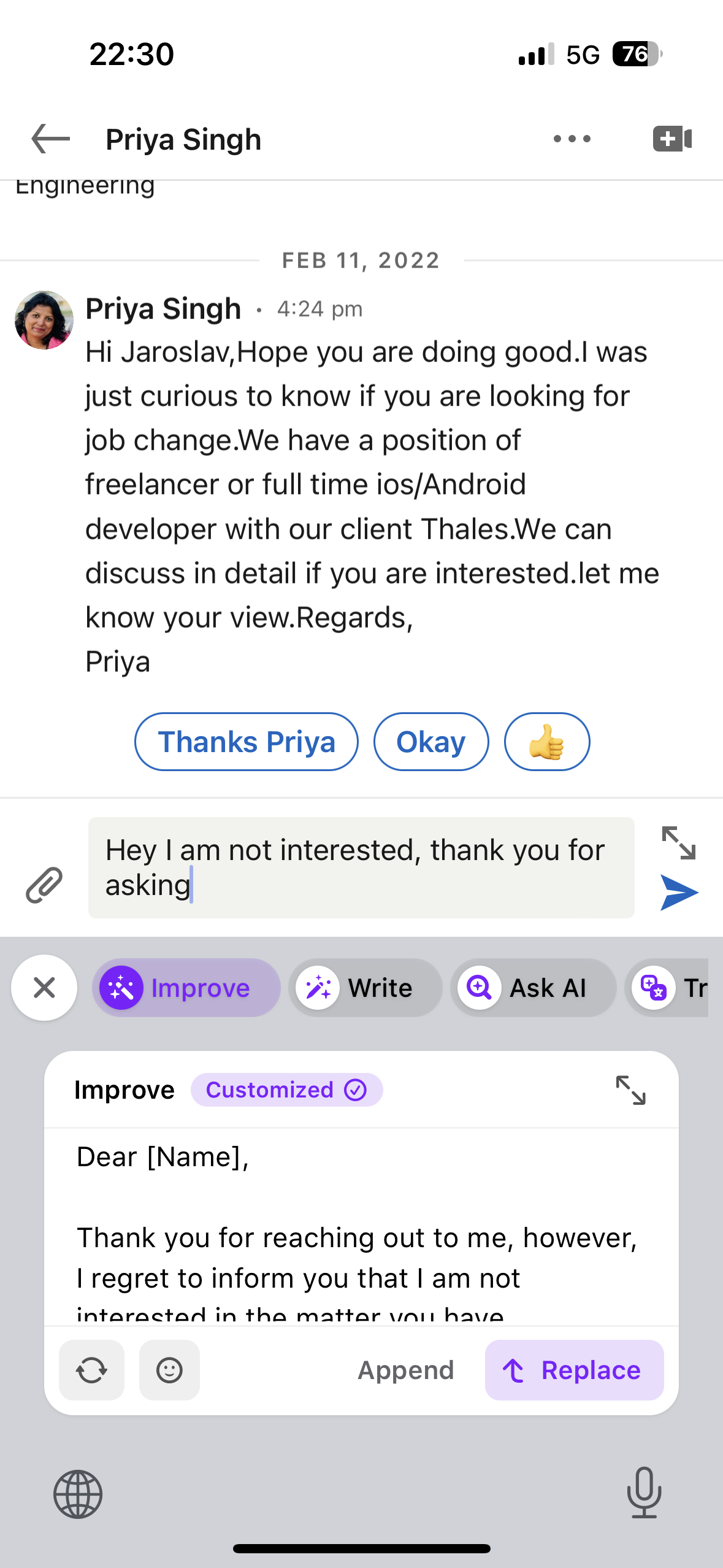 Never miss a beat in conversations. Generate quick and contextually relevant replies with the help of AI, keeping your interactions engaging and dynamic.